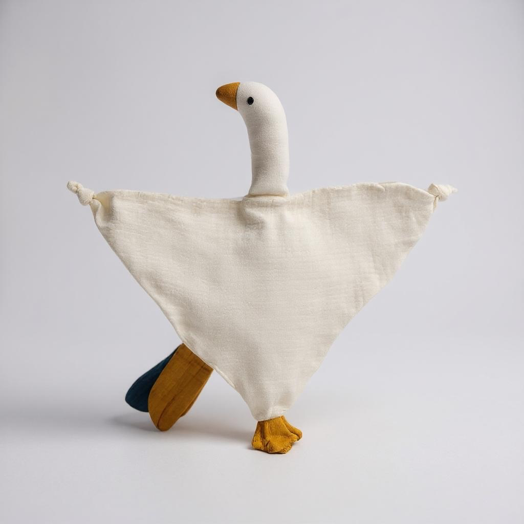 Ta mehka goska iz muslina je prijeten spremljevalec za dojenčke in malčke, izdelana iz zračnega bombažnega muslina, ki je varen za dojenčke in je kot nalašč za crkljanje, pomirjanje ali igro. Lahek in nežen do občutljive kože je idealen za spanje, potovanja ali vsakodnevno udobje. Vsak kos je popolnoma prilagodljiv z vezenjem zaradi česar je resnično edinstveno in premišljeno darilo. Ta prilagojena udobna igrača je primerna za praznovanje novorojenčkov, rojstne dneve ali spominke v otroški sobi, v svet vsakega otroka vnese toplino, šarm in kanček ustvarjalnosti.